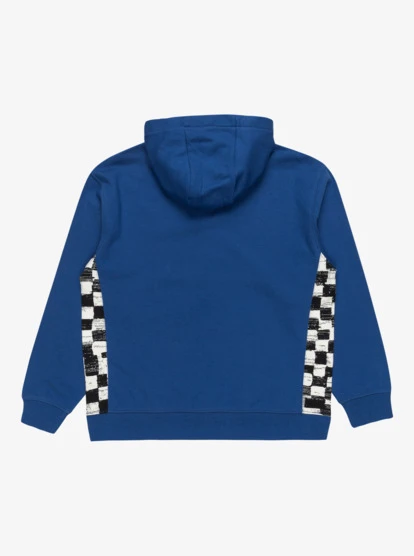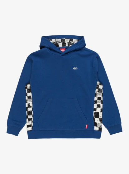 Branding: Quiksilver seasonal checker all-over print on side panels and hood lining